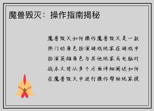 魔兽毁灭:操作指南揭秘