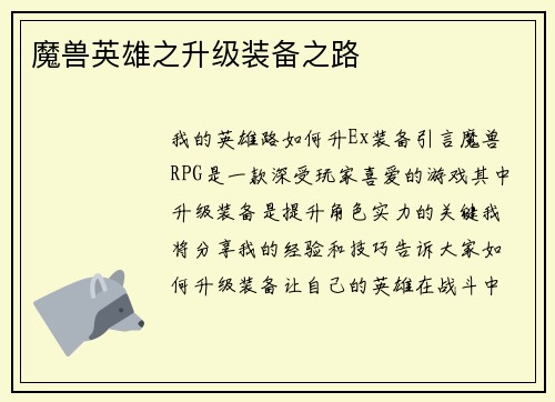 魔兽英雄之升级装备之路